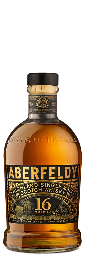 Der 16 Jahre gereifte Single Malt aus den Highlands schließt seit 2015 die Lücke zwischen dem Aberfeldy 12 Jahre und dem Aberfeldy 21 Jahre. Wer den milden, charmanten Einstiegswhisky der Distillery mag, muss den vier Jahre länger gereiften Aberfeldy 16 Jahre lieben. Mit mehr Finesse und Fülle führt er den eher fruchtbetonten, weichen Stil des Hauses in höhere Genuss-Gefilde. Dieser Single Malt ist ein Muss für Scotch Fans.