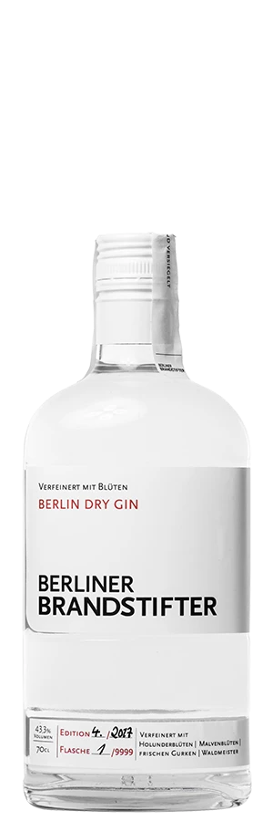 Der Berliner Brandstifter ist seiner Heimatregion tief verbunden: Für die Aromen des Dry Gin kommen hauptsächlich Botanicals aus dem Berliner Umland zum Einsatz. Die klassische Wacholdernote steht im Zentrum der Aromenpalette, hinzu kommen unter anderem floral-duftiger Holunder, frischer Waldmeister und zarte Malve.