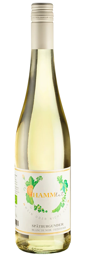 Der Hammlet Blanc de Noirs ist ein im besten Sinne unkomplizierter Weißwein: frisch, fruchtig und knackig. Er wird aus den roten Trauben des Spätburgunders hergestellt. Damit der Wein keine Farbe annimmt, werden die Trauben direkt nach Ankunft im Weingut abgepresst und der Saft von den Schalen getrennt. Anschließend vergärt der Saft in Edelstahltanks im Keller des Weingutes Hamm und wird nach rund zwei Wochen von dort auf Flaschen gezogen.