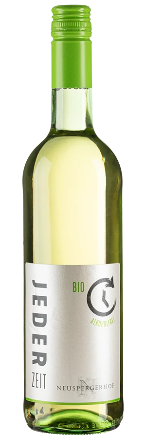 Bei diesem alkoholfreien Wein handelt es sich um ein besonders gelungenes Exemplar. Durch besonders reifes Lesegut und ein speziell entwickeltes Verfahren der Entalkoholisierung ist es der Familie Gradolph vom Neuspergerhof erstaunlich gut gelungen, den Geschmack und die Stilistik eines „echten Weines“ zu bewahren. Das ist vor allem eine gute Nachricht für Weinfreunde, die ganz bewusst auf Alkohol verzichten möchten oder müssen und damit nicht genug: Der „Jederzeit“ ist außerdem vegan, da keine Klärungs- oder Schönungsmittel tierischen Ursprungs eingesetzt werden.