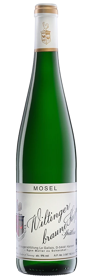 Die Egon Müller Weine mit dem Zusatz „Le Gallais“ stammen von Weinbergen, die im Zuge der Übernahme des gleichnamigen Weinguts im Jahr 1954 in den Bestand des Müller’schen Scharzhofs in Wiltingen übergegangen sind. Ein kluger Schachzug vom Vater des heutigen Besitzers – Egon Müller IV. – stammt diese Spätlese etwa aus der Monopollage Braune Kupp in Wiltingen. Ein nach Süden ausgerichteter Weinberg im Alleinbesitz von Egon Müller, der von Devonschiefer geprägt ist, gerade einmal 4 Hektar groß ist und vergleichsweise nah an der Saar liegt. Der Wein von ihr fällt etwas reichhaltiger und in jungen Jahren auch zugänglicher aus, als die Weine aus dem Scharzhofberg, der in einem Seitental liegt.