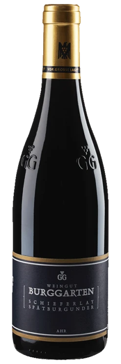 Die Einzellage Schieferlay wurde vom prestigeträchtigen VDP als Große Lage eingestuft – die höchstmögliche Qualitätsstufe. Wenn man nun zusätzlich weiß, dass die Ahr für hochqualitative Weine der Rebsorte Spätburgunder bekannt ist, hat man bereits eine grobe Vorstellung davon, wie gut der Schieferlay Spätburgunder vom Weingut Burggarten sein muss. Kommt er dann ins Glas und in den Mund, wird völlig klar, dass dieser Spätburgunder wahrhaft großes deutsches Weinkino zeigt. So muss sich der Schieferlay selbst vor zigfach teureren Pinot Noirs aus dem Burgund keineswegs verstecken. Das Wort Lay steht übrigens für Fels und unterstreicht somit die Herkunft von einem schiefergeprägten Boden. Der Schieferlay-Weinberg erstreckt sich von Süden nach Südwesten und ist mit 45 Grad Steigung extrem steil. Durch die vergleichsweise hohe Lage auf 150 bis 160 Meter erhalten die Weine neben der ausgezeichneten Mineralik auch noch eine wunderbare Frische. Das Ergebnis ist ein Wein aus einer Großen Lage, der kühl und rein wirkt und gleichzeitig unwahrscheinlich konzentriert und vielschichtig daherkommt. Ein Wein, der jetzt schon zeigt was er kann, aber wahrscheinlich erst in 10 Jahren sein wahres Potential offenbart. Ganz hervorragend! Übrigens: Da Burggarten erst im Jahr 2019 Mitglied im VDP wurde, tragen Flaschen aus Jahrgängen zuvor noch nicht die offiziellen Bezeichnungen des VDPs.