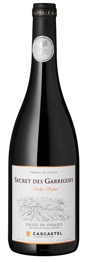 Der Secret des Garrigues Vieilles Vignes stammt aus dem Vallée du Paradis, einem Gebiet östlich von Cascastel. Das Klima ist mediterran, mit heißen, trockenen Sommern und milden Wintern. Die Böden sind sehr unterschiedlich und bestehen aus Schiefer, Sandstein, Kalkstein oder Lehm. Die Rebstöcke, aus denen dieser Wein gewonnen wird, sind zwischen 40 und 100 Jahre alt. Sie wachsen auf steinigen Böden mit Felsabbrüchen und sind von Garrigue umgeben. Die alten Reben erbringen einen geringen Ertrag, aber eine hohe Konzentration an Aromen und Tanninen. Der Wein besteht aus Syrah, Carignan, Grenache und Merlot, wobei der Anteil an Syrah am höchsten ist. Die verschiedenen Rebsorten bringen ihre eigenen Charakteristika in den Wein ein und bilden so ein harmonisches Ganzes mit einer feinen Balance zwischen Struktur, Frucht und Tanninen.