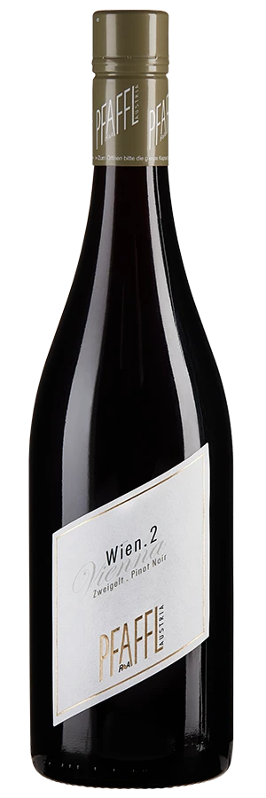 Bekannt ist Pfaffl für seinen legendären Grünen Veltliner. Mit der außergewöhnlichen Cuvée aus Zweigelt (70%) und Pinot Noir (30%) – dem „Wien. 2“ – lässt das Weingut auch in Sachen Rotwein aufmerken. Wie immer bei Pfaffl bestimmt die schonende Arbeit in Weinberg und Keller die Herstellung des Weins. Die Trauben für den „Wien. 2“ stammen aus den Lagen Herrenholz und Praschen, beide auf einem Hochplateau mit Blick auf Wien gelegen. Der Boden des Hochplateaus besteht aus sogenanntem Flysch, einer Kombination aus Ton- und Sandstein, die charakteristisch für den gesamten Höhenzug ist. Noch im Weinberg werden die Zweigelt- und Pinot Noir-Trauben selektiert, um bestmögliches Rebmaterial zu erzielen. Die alkoholische Gärung erfolgt im Edelstahltank mit etwa 20 Tagen Maischestandzeit. Für die perfekte Reife des „Wien. 2“ wandern 20 Prozent des Weines in gebrauchte Barriques.