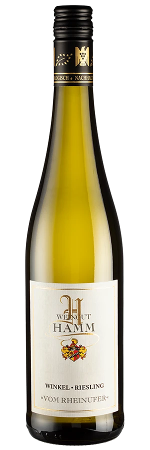 Ein besonders gut gelungener Vertreter dieser Rheingau Riesling Weine ist der Gutswein Winkel Riesling „vom Rheinufer“. Er stammt von den tiefgelegenen Lagen des Weingutes Hamm in Winkel, einem Ortsteil von Oestrich-Winkel und ist vom Verband Deutscher Prädikatsweingüter (VDP) als Ortswein klassifiziert. Die Rebstöcke wurzeln hier tief in den Sedimenten des Schwemmland-Bodens und entwickeln hierdurch ihre besondere Charakteristik. Die Trauben für diesen rassigen und filigranen Riesling gelangen auf kürzestem Weg in den Keller des nur wenige hundert Meter von den Weinbergen entfernten Weingutes Hamm. Hier werden die Trauben sofort gepresst und der Most bei kühlen Temperaturen vergoren. Die Lagerung erfolgt schließlich im Edelstahltank.
